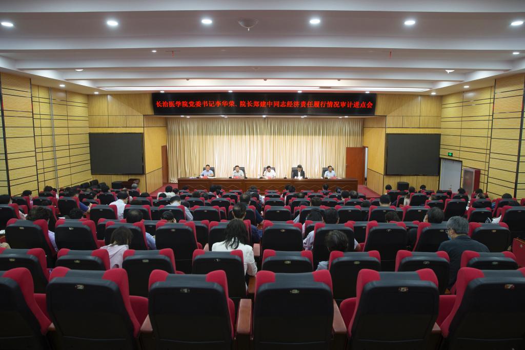 6月15日上午,长治医学院党委书记李华荣、校长郑建中同志经济责任履行情况审计进点会在临床技能中心学术报告厅召开。审计组组长、省审计厅副巡视员檀吉忠同志,审计组副组长刘成亮、主审黄大银及审计组其他成员;全体校领导、各院系及二级部门主要负责人、离退休和教职工代表参加会议。会议由刘成亮同志主持。