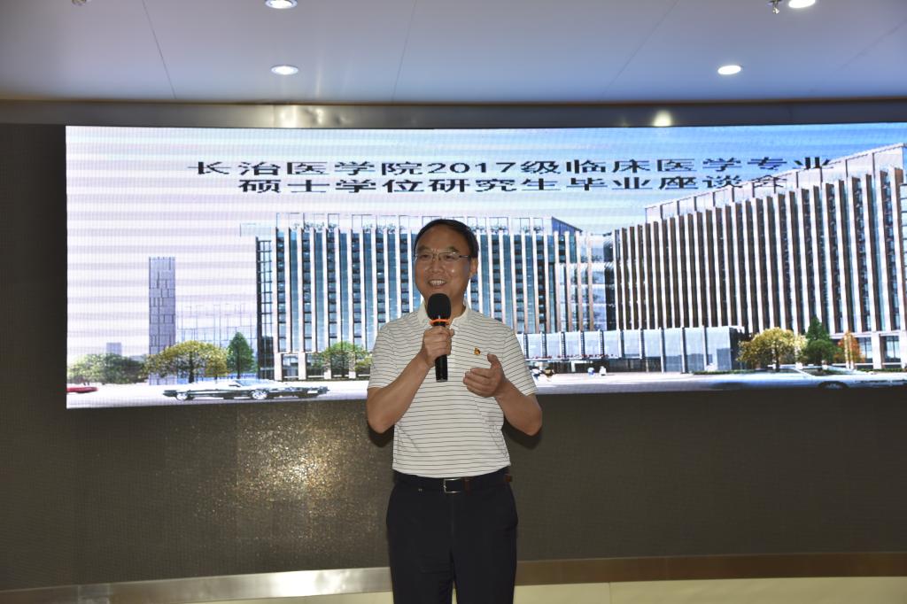 座谈会上,郑建中围绕“三年的研究生生活即将结束,毕业时大家应该带走什么?”与同学们畅谈。他指出,第一,要传承红色血脉。长治医学院作为中国共产党最早创建的医学院校之一,有着璀璨的精神、红色的历史、光荣的传统,这是长医得天独厚的精神财富,希望同学们传承发扬。第二,要继承和弘扬我校“三大精神”。在长医求学的几年里,大家经历了“三大精神”的洗礼和浸润,“艰苦奋斗、自强不息”的太行精神,“全心全意、精益求精”的白求恩精神,“厚德精业、济世报国”的何穆精神是同学们立身之本的根源。第三,要铭记“厚德、精业、济世、报国”八字校训。这是我们何穆老校长毕生的追求和真实写照,同学们在追求自己人生梦想的时候,要像老校长那样,心系国家兴衰、心系人民福祉,要有“厚德精业、济世报国”的情怀和“除人类之病痛,助健康之完美”的担当,这是一个医者应有的初心和使命。第四,要培养爱学习、善思考、多实践的好习惯。作为一名医学生要牢固树立终身学习的理念,在临床实践中要善于思考、勤于动手,培养团结合作、有效沟通的能力。