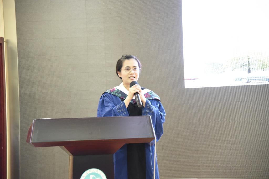 毕业生代表邱卉发言,她深情回忆了三年研究生学习生活的点点滴滴,衷心感谢学校、老师的教育培养和关怀支持,感谢校长的谆谆教诲,表示会时刻牢记“长医精神”和“厚德、精业、济世、报国”的校训,努力拼搏,不负青春。