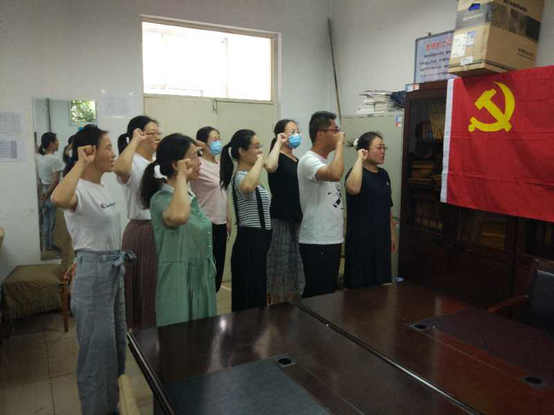 6月29日,医学影像学系党总支组织全体党员开展主题党日活动。教工党支部书记王小艳带领大家重温入党誓词,铿锵有力的话语彰显出坚定和无悔,高举的右拳凝聚着力量和底气。党总支书记崔海霞以“学习讲话和指示 坚守初心和使命”为主题为党员们上了一堂生动的党课。