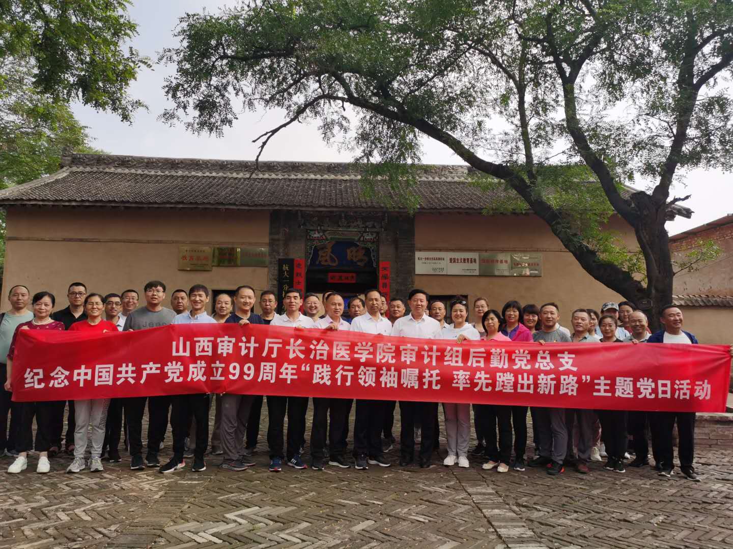 7月3日,山西省审计厅驻长治医学院审计组、我校后勤党总支组织党员赴中国人民抗日军政大学第一分校旧址和屯留老爷山“山西省爱国主义教育示范基地”开展主题党日活动。在中国人民抗日军政大学第一分校及女生队旧址,大家一同瞻仰红色遗迹,接受红色教育,通过参观,全体人员了解了“抗大一分校”的艰辛办学历史和抗大学员为抗战胜利抛头颅、洒热血的英勇奋斗事迹。参观完毕后,审计组主审黄大银带领大家面对党旗,庄严地举起右手,重温入党誓词,表达了“不忘初心,砥砺前行”和对党矢志不渝的坚定决心。在屯留老爷山“山西省爱国主义教育示范基地”,大家认真聆听了讲解员的解说,踏着先辈足迹,重温革命历史。