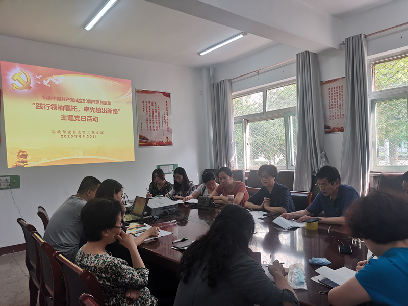 6月30日,思政部党总支教工第二党支部开展了庆祝建党99周年活动。党支部书记李慧领学了“习近平总书记视察山西重要讲话重要指示”,党员教师围绕习近平总书记在讲话中提出的“要加强文化建设,最重要的是弘扬社会主义核心价值观”重要指示,结合思政课教育教学实际,踊跃交流发言;党总支书记盖庆芳以“发挥党员先锋模范作用,努力打造思政金课”为题,为全体党员讲授了一堂生动的党课。