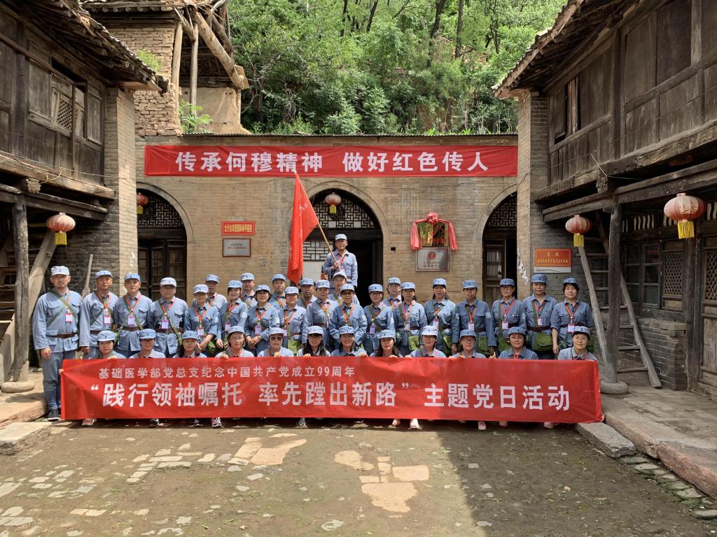 7月1日,基础医学部党总支组织全体党员赴黎城县西村红色医疗教育基地开展了主题党日活动。党员们集体参观了宽嶂山冀南银行印钞厂旧址,小寨村冀南银行总行旧址;听取了关于八路军后方医院在西村的革命历史、冀南银行的介绍;瞻仰了宽嶂山革命烈士公墓,缅怀革命先烈的英勇事迹。