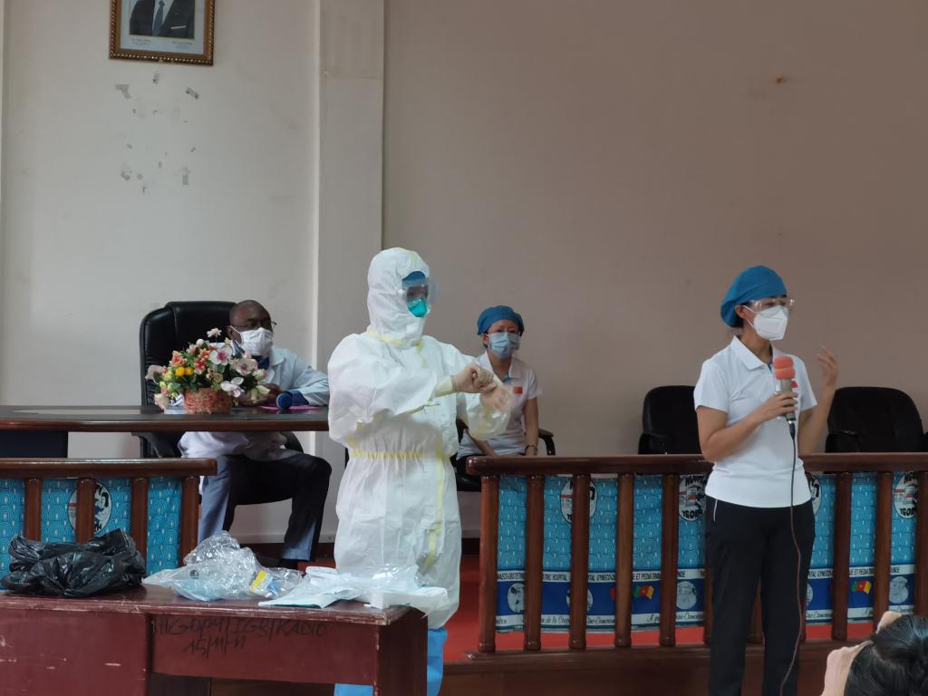 为了能让受援医院更好地、更规范地使用防护物资,达到最佳防护效果,我校援非队长、援喀麦隆妇儿医院医疗队队长方宁在交接现场进行了抗击疫情三级防护的规范演示,分享了中国抗疫经验,提高了受援医护人员的抗疫水平,现场不时响起热烈的掌声。