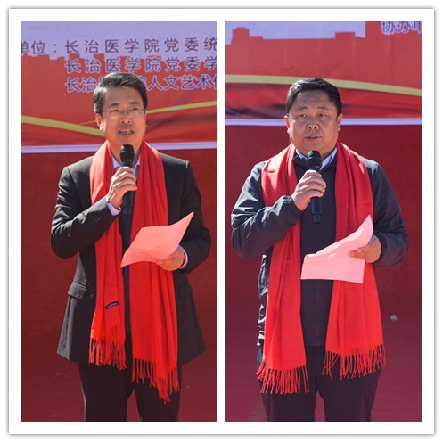 (校党委书记李华荣、东寺头乡党委书记刘春旺分别为文化节致词。)