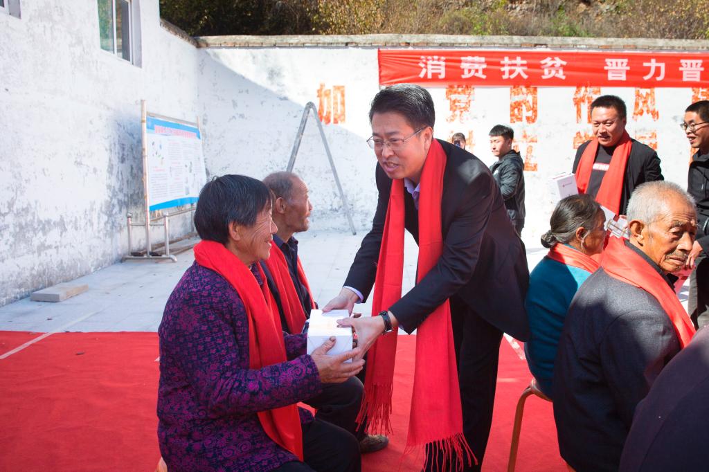 李华荣在致辞中代表校党委和广大教职员工对焦底村村民表达最诚挚的问候和衷心的祝福;对东寺头乡党委政府给予我校帮扶工作的大力支持表示感谢。他指出,焦底村举办“感恩奋进——孝老敬亲”活动的同时开展消费扶贫,是认真学习习近平总书记关于扶贫工作的重要论述和重要指示精神,贯彻落实省委省政府关于脱贫攻坚的决策部署落实的具体体现,是将传承中华文化与开展感恩奋进教育相结合、扶贫扶志深度融合的具体体现。长治医学院党委始终重视扶贫工作,始终关心、关注帮扶村的群众,针对今年疫情汛情影响,学校加大消费扶贫力度,最大限度地降低和减少贫困户因疫因灾造成的影响,帮扶工作得到了群众的认可;取得成果的同时,也要清醒地认识到,不平衡不充分发展仍是现阶段社会经济发展的主要矛盾,驻村干部要坚持住村在岗、永不懈怠,再续佳绩,结对干部要结亲群众、扶危济困,再接再厉。