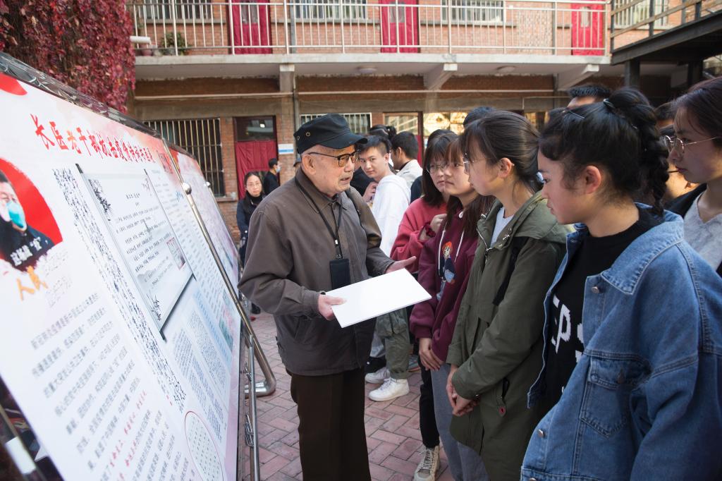 活动中,老同志们与麻醉学系师生一同参观了抗击疫情诗词书画展,参展作品的创作者现场为师生讲解创作心得和伟大抗疫精神,激发了广大师生爱党爱国爱校之情。