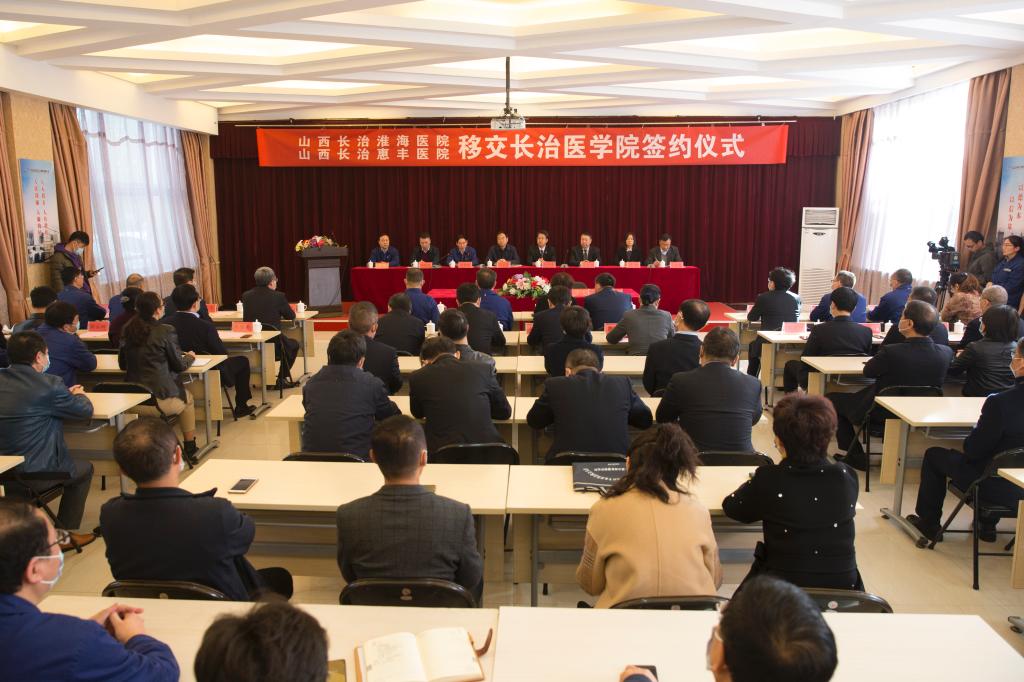11月2日上午,山西长治淮海医院、惠丰医院移交长治医学院签约仪式在淮海宾馆举行,淮海医院、惠丰医院成建制整体移交我校,正式成为我校直属附属医院。
