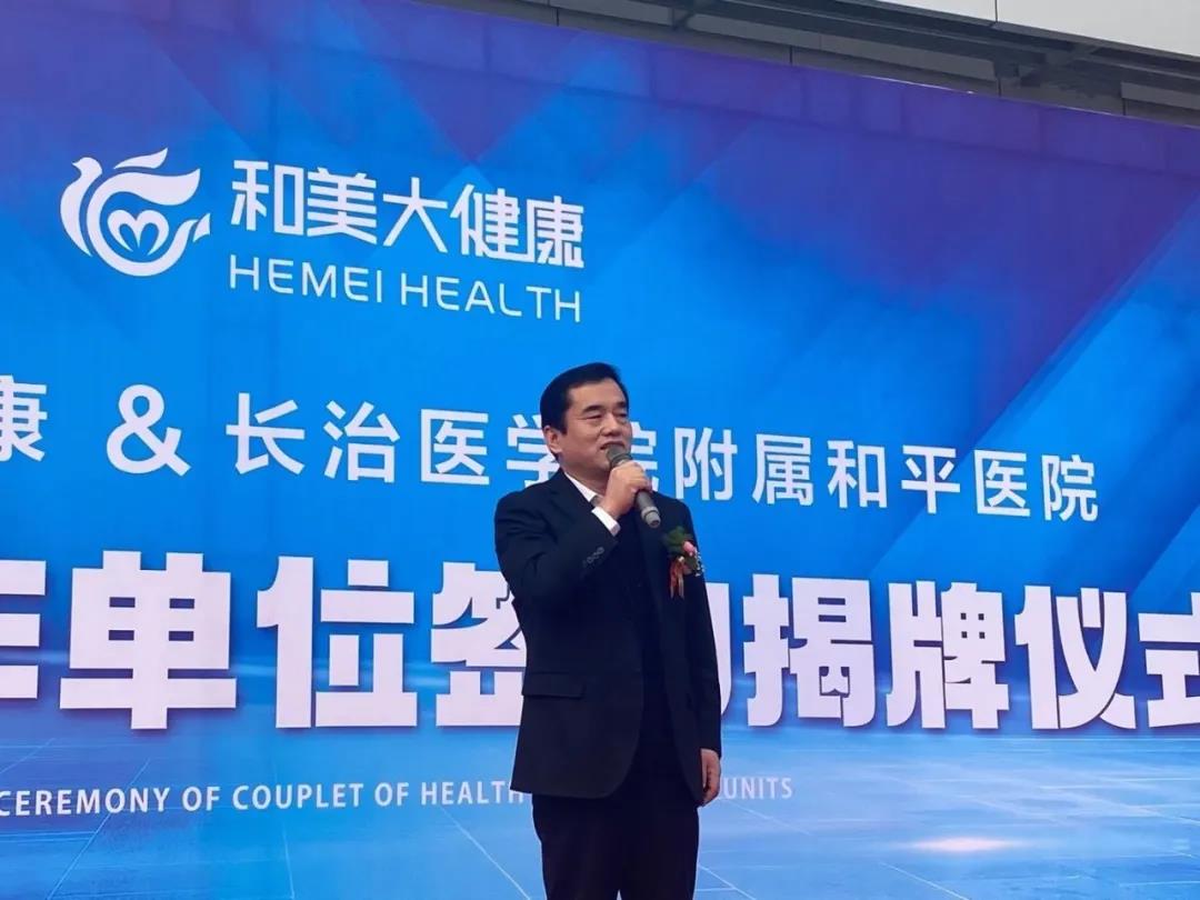 尚晋河在致辞中表示,热烈欢迎并衷心感谢长治医学院附属和平医院党委书记尚进平、院长李红倬的到来,晋城和美大健康与长治医学院附属和平医院携手并进、共建晋城卫计事业,给晋城人民带来健康保障,晋城市卫健委对这项工作非常认可,将给予大力支持。
