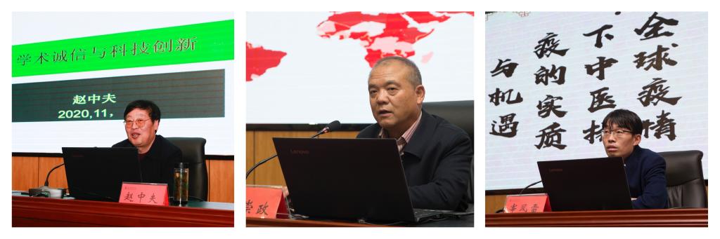 5日下午和6日下午,我校邀请原副校长赵中夫教授、公共卫生与预防医学系郭崇政教授、附属和平医院针灸科宰风雷主任在临床技能中心学术报告厅分别作了题为《学术诚信与科技创新》《新冠肺炎防治进展》《全球疫情下中医抗疫的实质与机遇》的讲座。赵中夫教授用古今中外大量事例,深入浅出地分析了科研不端行为产生的原因与危害,以及科研诚信对科技创新的至关重要性;郭崇政教授向大家详细介绍了国内外新冠病毒抗体药物研究进展;宰风雷结合全球疫情防控的挑战,阐述了中医药学对生命科学研究的重要积极意义。