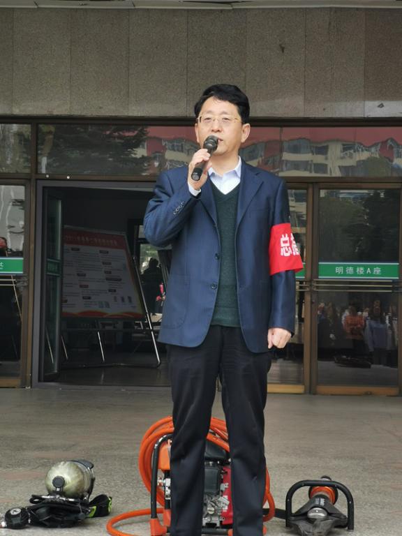 宋晓亮对演练工作进行了点评总结。他指出,安全教育、应急演练是学校人才培养工作的重要组成部分,大家一定要在思想上高度重视,切实提高安全意识,牢固树立“安全第一、健康第一”的理念,通过演练真正提高避险防范能力,更好地保障自身及公共财产安全,为平安校园建设贡献力量。
