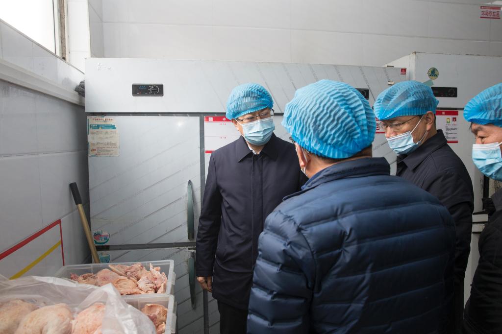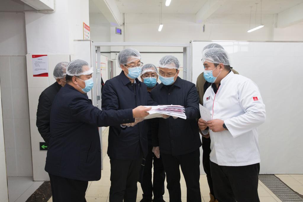 在学校食堂,李华荣一行深入后厨,就环境卫生、原材料采购、食材加工流程、从业人员健康管理、餐具清洗消毒等进行检查,详细查看了操作间、储藏室、留样室,供货商资质及进货送货情况。强调,一定要加强对冷链食品加工、储存和运输的管理,进货送货详细登记,消毒防疫不留死角。