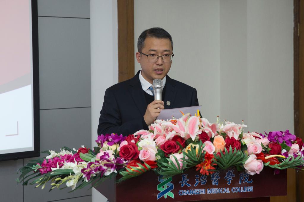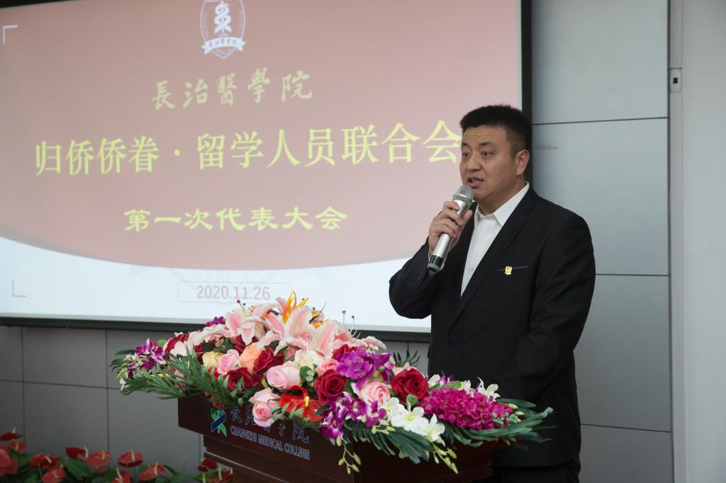 刘强代表山西欧美同学会(山西留学人员联谊会)及张文栋会长对我校留学人员联谊会的成立表示热烈祝贺。他指出,长治医学院留学人员联谊会是第五个在全省重点高校中成立的留学人员联谊会组织,标志着我省又新增了一个集聚人才、服务社会、留学报国的重要平台,在山西留学人员事业中具有重要意义。为此,他提出四点建议,一要定位高远,健全机制,不断提高服务意识和服务能力;二要充分发挥桥梁作用,积极创造条件,做留学人员思想的引导者、事业的推动者、业绩的宣传者、权益的维护者;三要进一步凝聚留学人员的智慧,充分发挥建言献策、引荐人才、创新创业、服务社会等方面优势,吸引更多海外高层次人才为我省发展贡献力量;四要传承“太行精神”“上党精神”“长医精神”,发挥自身优势,为山西经济社会发展提供坚强的科技支撑和人才保障。