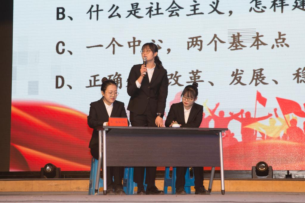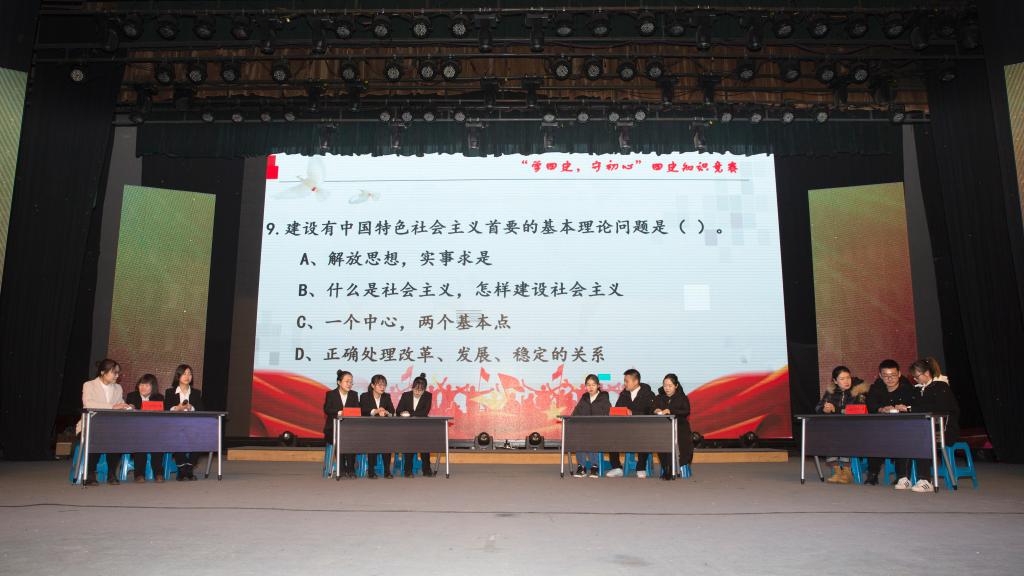 为迎庆建党100周年,推进我校“党史、新中国史、改革开放史、社会主义发展史”学习教育深入开展,引导广大师生深入学习贯彻习近平新时代中国特色社会主义思想,特别是习近平总书记关于党史、新中国史的重要论述,知史爱党、知史爱国,在新时代发扬党的光荣传统、优良作风,切实把红色基因注入血脉、刻进灵魂,12月21日晚,我校在科学会堂举办了“学四史,守初心”知识竞赛决赛。党委书记李华荣,党委副书记、校长郑建中,党委常委、副校长宋晓亮、胡春香,党委常委、统战部部长常秀英、学工部部长邢育宏、宣传部部长崔红莅临活动现场。思政部裴育萍、王丽、王蓉三位教师担任评委。