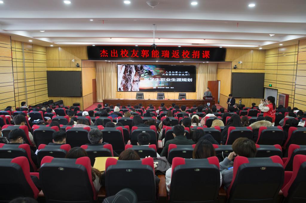 12月9日下午,我校于临床技能中心学术报告厅举办了“杰出校友返校捐课活动”。94级校友、运城市第一医院院长郭能瑞作“医学生职业生涯规划”主题讲座。讲座由党委(学院)办公室主任王黎刚主持,近300名师生到场聆听。
