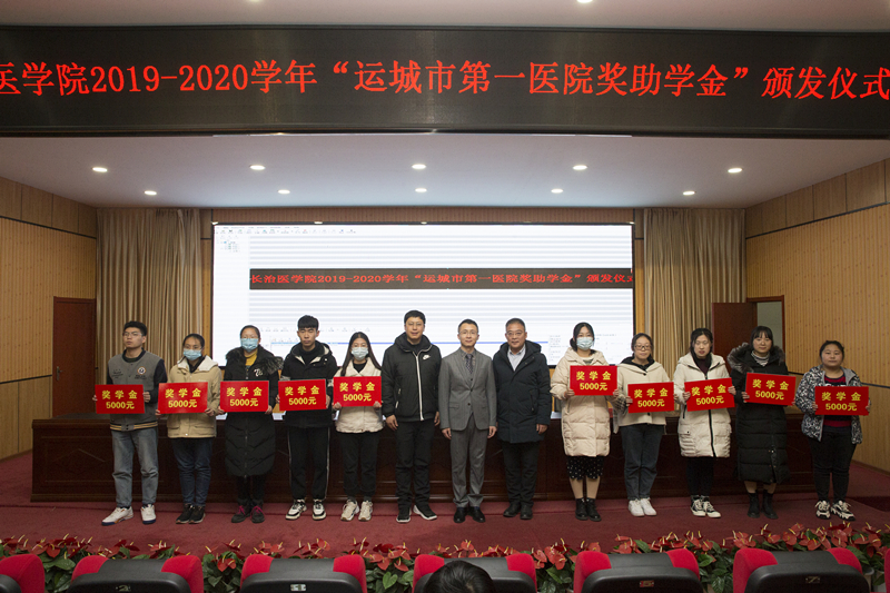 12月9日,我校在临床技能中心学术报告厅举行了2019——2020学年“运城市第一医院奖助学金”颁发仪式。运城市第一医院院长、我校杰出校友郭能瑞,党委常委、学工部部长邢育宏,学工部副部长裴振及300余名师生参加仪式。