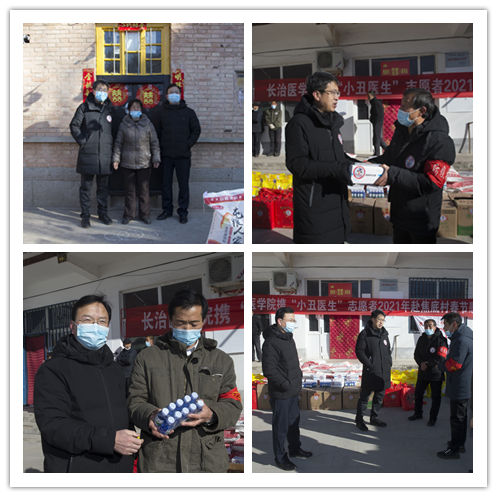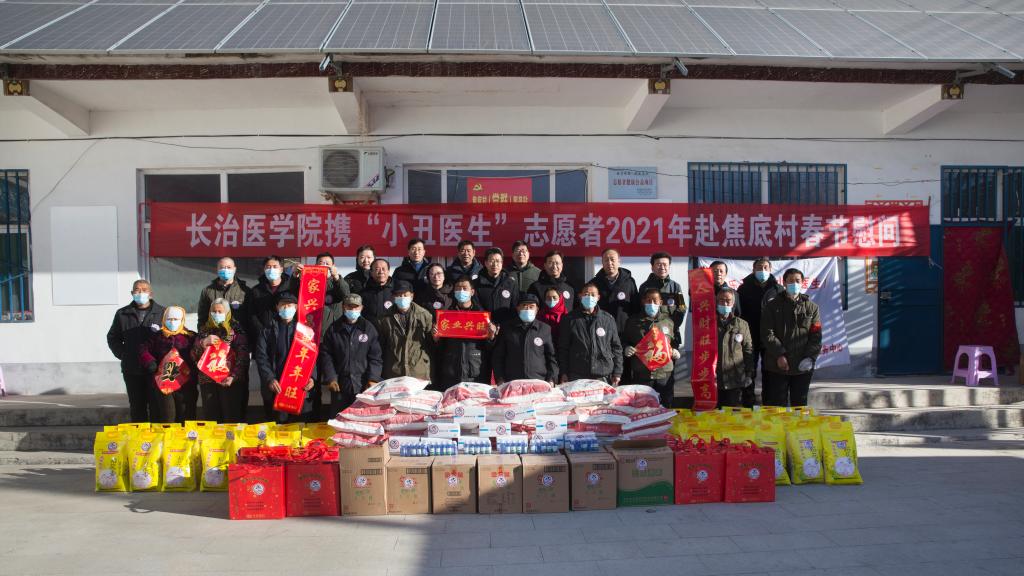 为帮助帮扶村做好疫情防控工作,同时让受疫情影响困难群众真正感受到党的政策关怀,感受到帮扶单位和社会大家庭的温暖,过上一个安心、祥和的春节,2021年1月17日,长治医学院党委书记李华荣、副校长王金胜携长治市小丑医生志愿者赴包扶村——平顺县东寺头乡焦底村开展2021年春节慰问活动。学校党委组织部部长李永红、党(院)办主任王黎刚等随同参加慰问。
