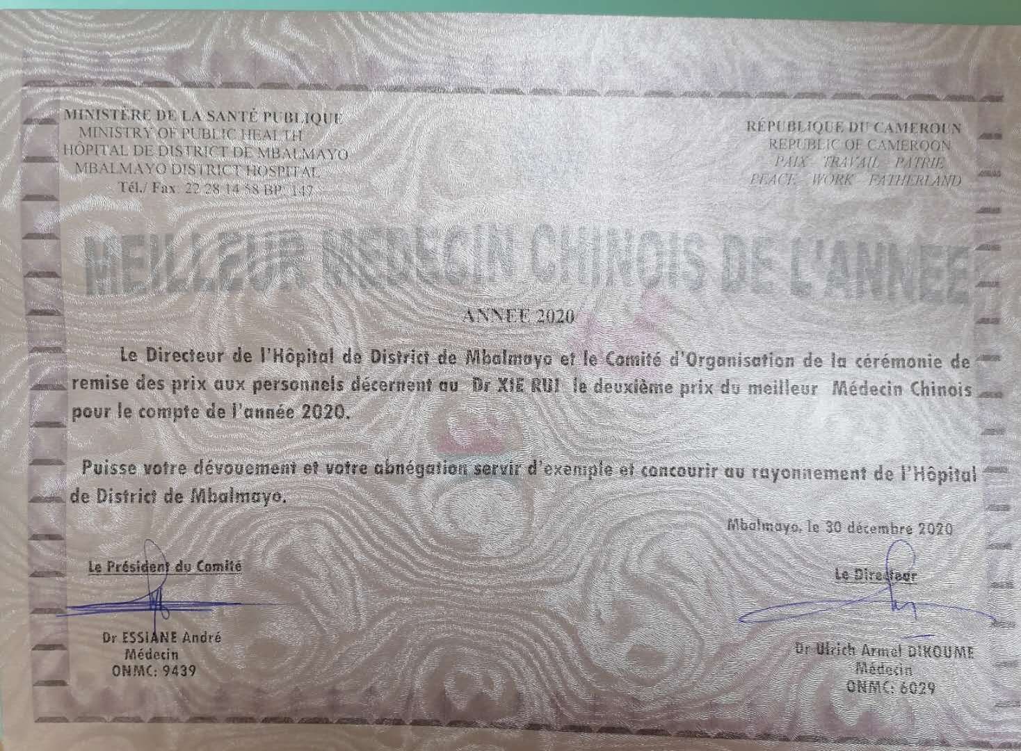近日,我校援非医疗队员解瑞由于表现突出受到受援医院表彰,与另外两名队友一同荣获中国医疗队个人年度最佳奖。这是当地医院对解瑞和中国医疗队工作的高度认可。