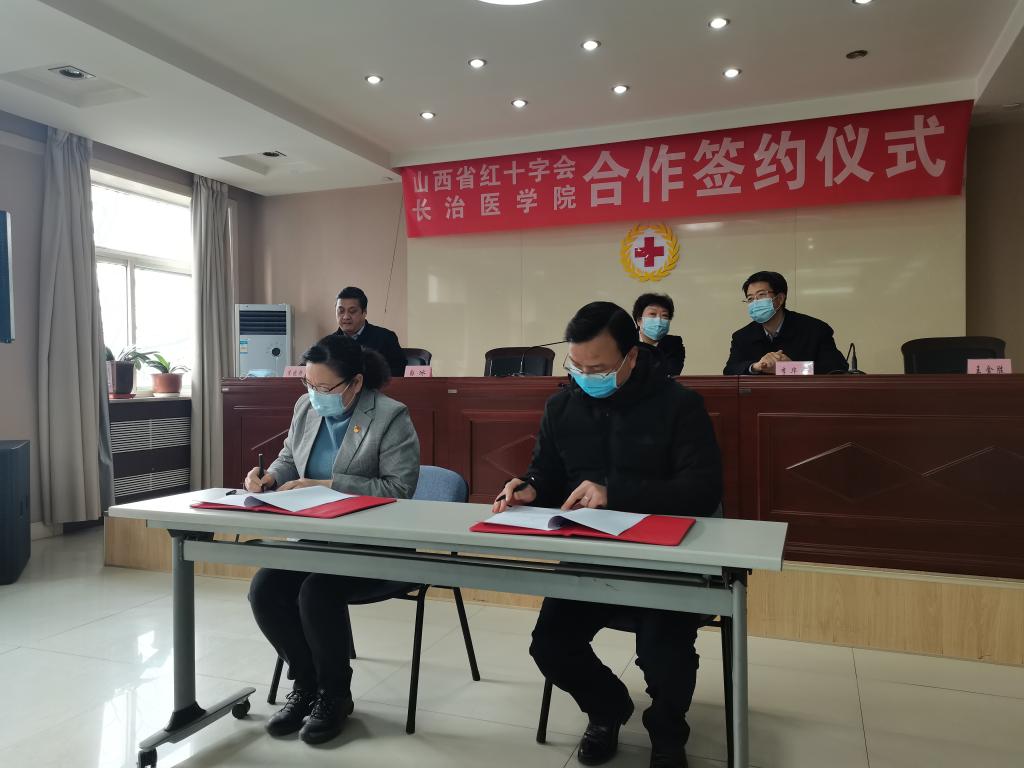 省红十字会党组书记、常务副会长郑红,长治医学院党委书记李华荣,省红十字会党组成员、副会长白冰,长治医学院党委常委、副校长王金胜,省红十字会党组成员、秘书长李晓静,长治医学院党委(院长)办公室主任王黎刚,长治医学院校团委副书记连静及省红十字会全体干部职工参加签订仪式。