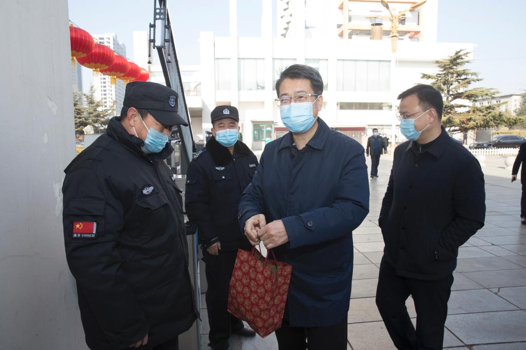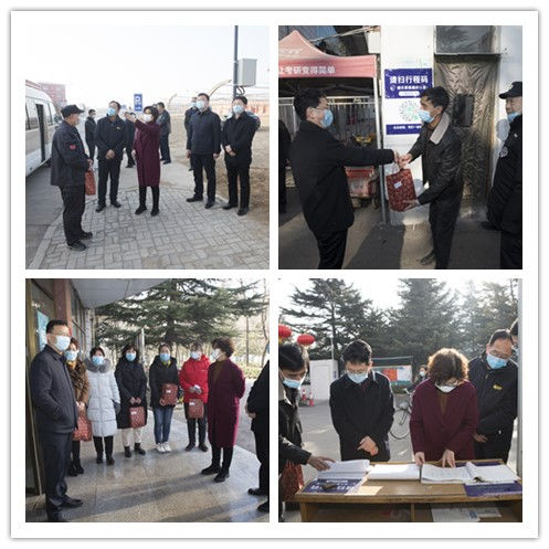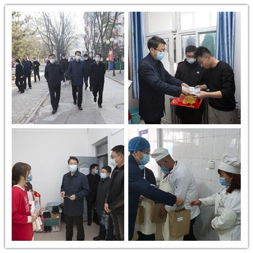 2月10日农历腊月二十九,我校党委书记李华荣,党委副书记张芳萍,党委常委、副校长宋晓亮,党委常委、副校长王金胜带队检查疫情防控,看望慰问春节留校学生和坚守岗位的一线职工,代表学校送去新春祝福。党(院)办、宣传部、学工部、教务处、研究生处、后勤保障处、保卫处等部门参加慰问。