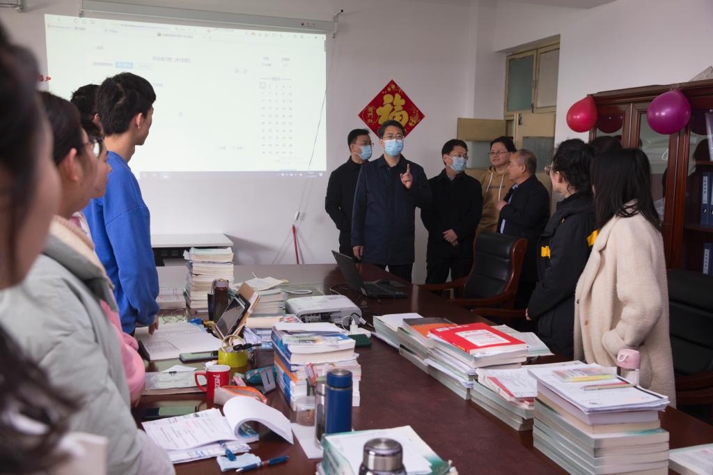 每到一处,校领导都与坚守工作岗位的职工、师生亲切交谈,详细了解疫情防控、工作生活情况,希望值班人员坚守岗位,恪守职责,确保节日期间校园安全稳定;要求指导老师认真总结经验、加强训练、科学备战,鼓励参赛选手勤学苦练、稳定心态、争取赛出好成绩;勉励研究生坚定人生信仰、坚守职业精神,合理规划学习和生活,利用留校时间做好学习科研。