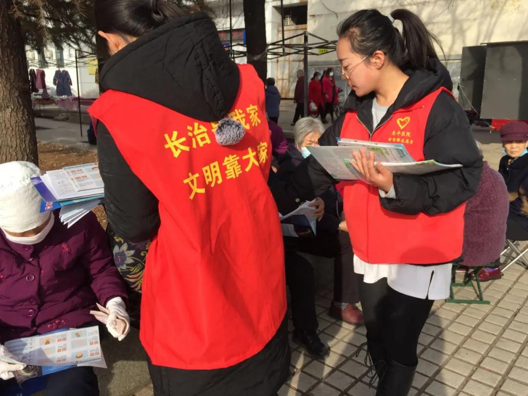 志愿者们身穿红马甲,携带多种健康教育宣传资料和检测小设备走上街头,为广大社区居民进行健康知识宣讲和健康检测。