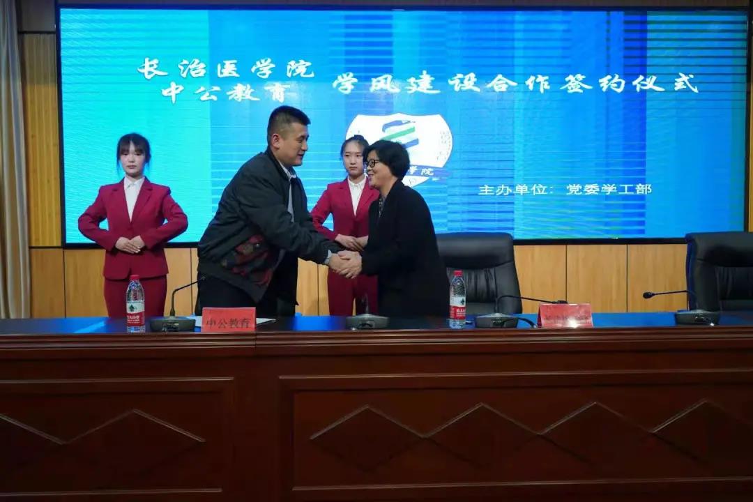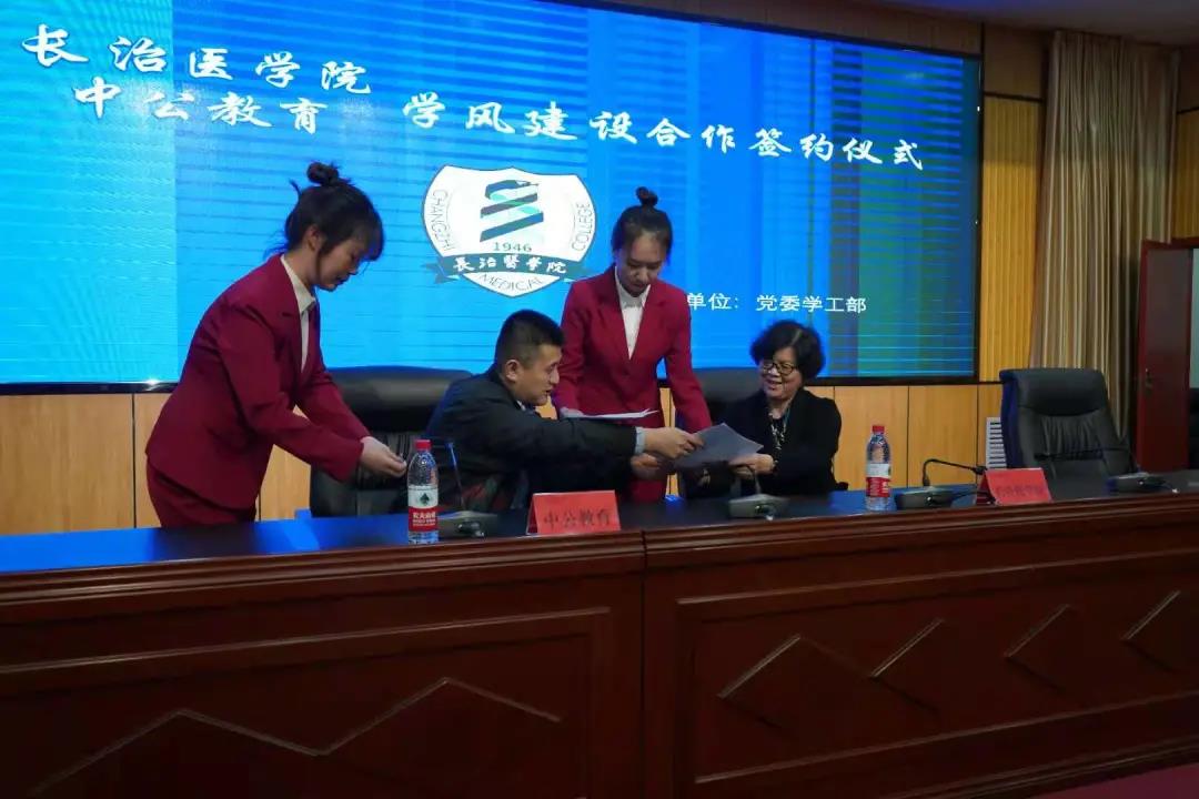 张芳萍与张帅代表合作双方分别在协议上签字。按照协议,双方将按照“优势互补,合作共赢,共同发展”的原则,共同促进学风建设,服务学生发展。中公教育集团将为我校学生提供优质优惠的考研、公务员考试、事业单位招聘考试等培训综合服务,并在我校设立“长治医学院中公教育学风建设基金”,用于学风建设活动的开展和对学生的奖励,共同促进我校学生就业率和考研录取率的进一步提升。
