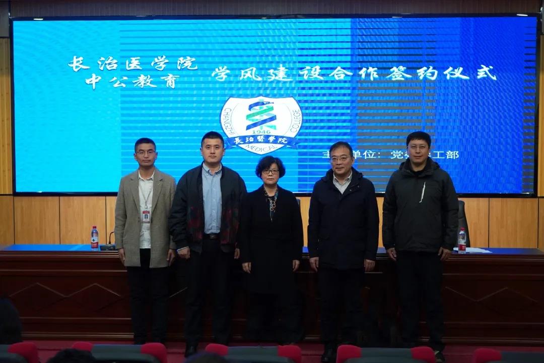 3月19日,我校在临床技能中心学术报告厅举行了与中公教育集团合作加强学风建设的签约仪式。校党委副书记张芳萍教授、中公教育长治分公司经理张帅、长治中公教育考研培训负责人张浩杰参加签约仪式。签约仪式由党委常委、学工部部长邢育宏主持。