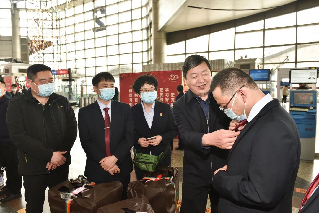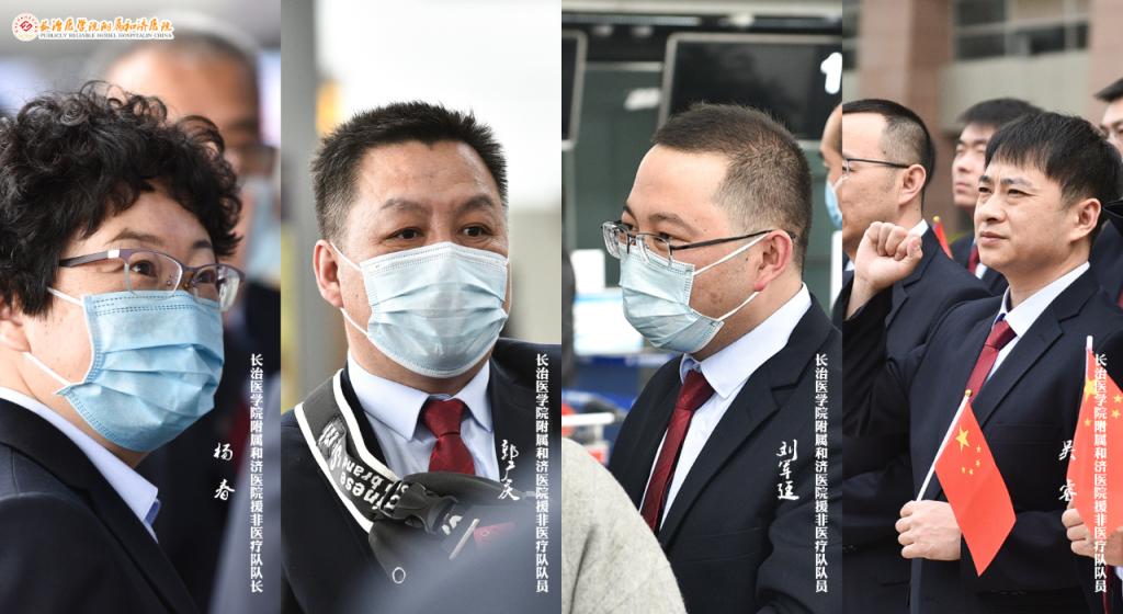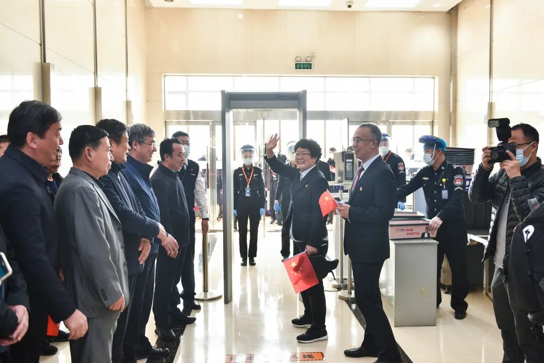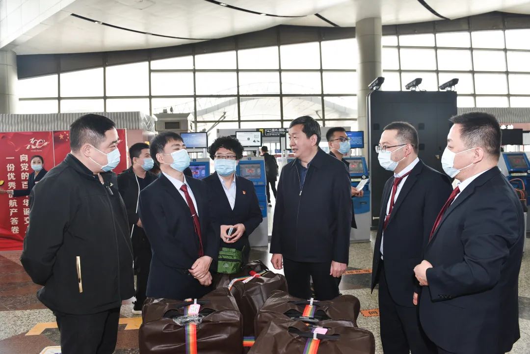 3月25日中午,在太原武宿机场,郑金平、郝少峰从医疗工作、疫情防控到队员安全再次进行了一一叮嘱。领导的殷切鼓励、深情嘱托让医疗队员们深感振奋,纷纷表示定将不辱使命,发扬“不畏艰苦、甘于奉献、救死扶伤、大爱无疆”的中国医疗队精神,圆满完成党和国家交给的援外任务。