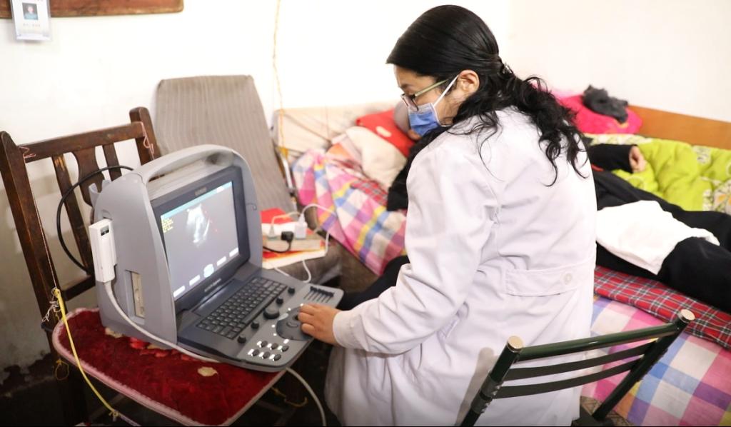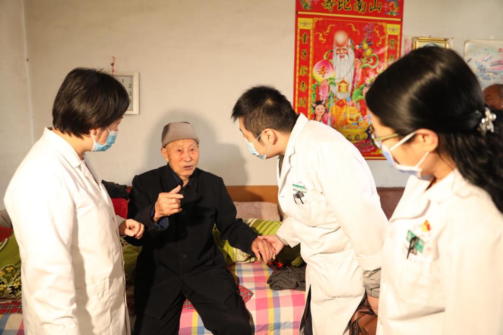 几位附属医院的专家利用携带的仪器设备为两位老人进行了抽血、B超等身体检查,并叮嘱老人身体上哪里不舒服,要及时联系医院就诊。