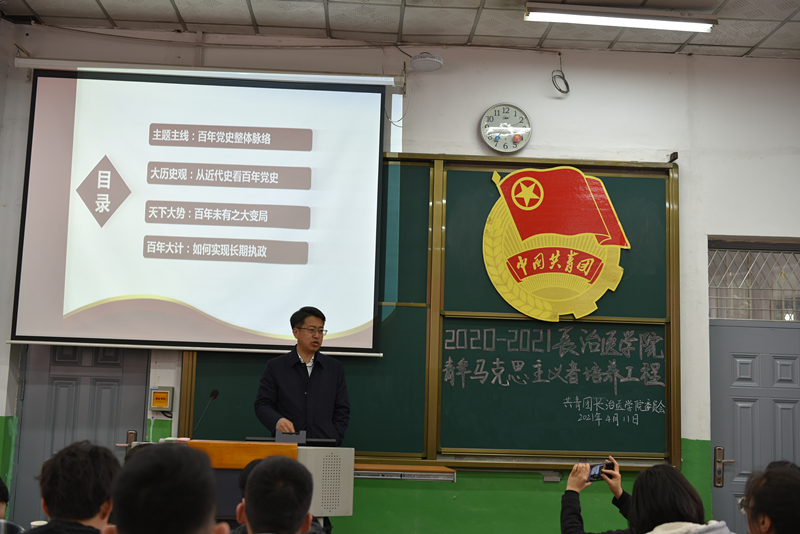 4月11日上午,以“学史明理、学史增信、学史崇德、学史力行,以实际行动迎接党的百年华诞”为主题的2020—2021学年第二学期“青马工程”培训在北区三教顺利开展。校党委书记李华荣教授为青马学员开启党史学习教育第一讲。校团委、学工部、各院系团委全体人员、青马工程全体学员100余人参加培训。