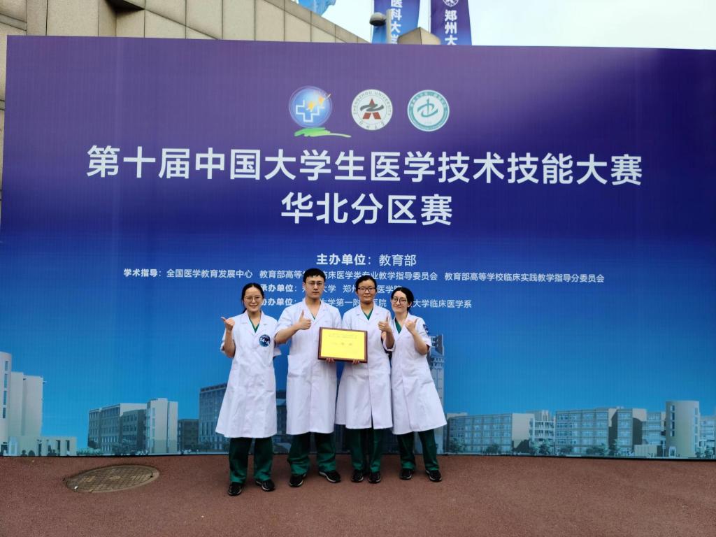 近日,由教育部主办的主题为“尚德精术培育卓越人才,中西并重共筑健康中国”的第十届中国大学生医学技术技能大赛临床医学专业五年制赛道华北分区赛、护理学专业赛道东北华北分区赛、预防医学专业五年制赛道东北华北分区赛圆满落幕。我校获团体一等奖1项,二等奖2项,个人单项奖1项。