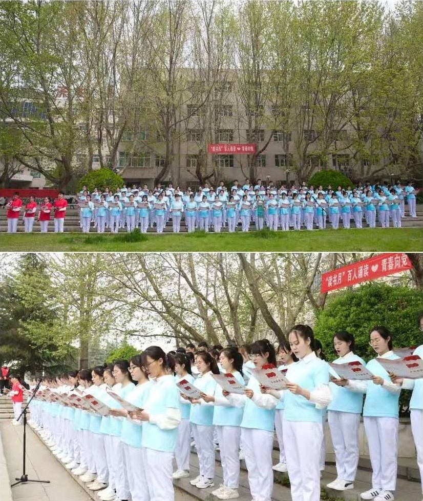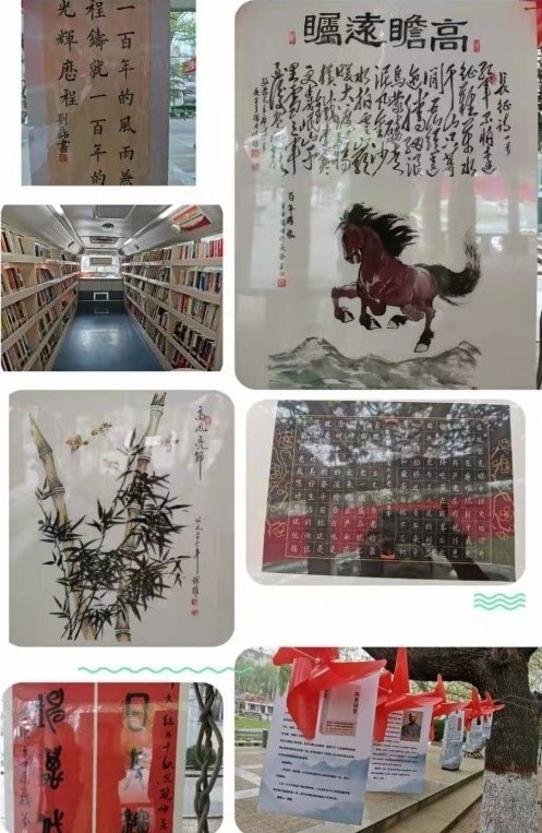 仪式结束后,在鸽子岛小广场举行了“庆祝建党100周年百人诵读”活动。还在校本部及五龙校区举办了庆祝建党100周年书画作品展、优秀书评及诗词飞花令展,开展了数据商现场咨询互动及图书流动车借阅服务。