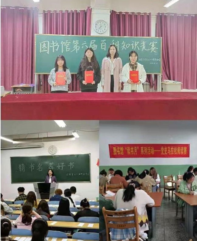图书馆将每年的4月确定为读书月,今年的读书月活动得到了护理学系、人文艺术传媒系、医学教育研究中心及校团委的大力支持。目前,已先后开展了“讲好中国故事,做好时代先锋”诵读大赛、百科知识竞赛、庆祝建党百年主题征文、“学习·共享”学术APP资源共享比赛、“庆建党百年,读红色经典”优秀书籍荐读等,系列活动的举办极大丰富了校园文化生活,营造了文明和谐、积极向上的校园文化氛围,增强了校园文化建设软实力。