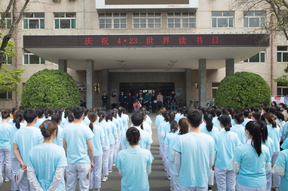 4月23日上午,为庆祝第26个世界读书日的到来,图书馆在至善楼前举办了庆祝“世界读书日”活动仪式。学校图书馆馆长杨爱平,护理学系党总支书记石虹,医学教育研究中心副主任杨素梅,人文艺术传媒系副主任王秀军,中国知网、万方数据、启悦文化等数据商代表,长治市图书馆代表以及来自各院系200余名师生参加活动仪式。仪式由图书馆副馆长李育平主持。