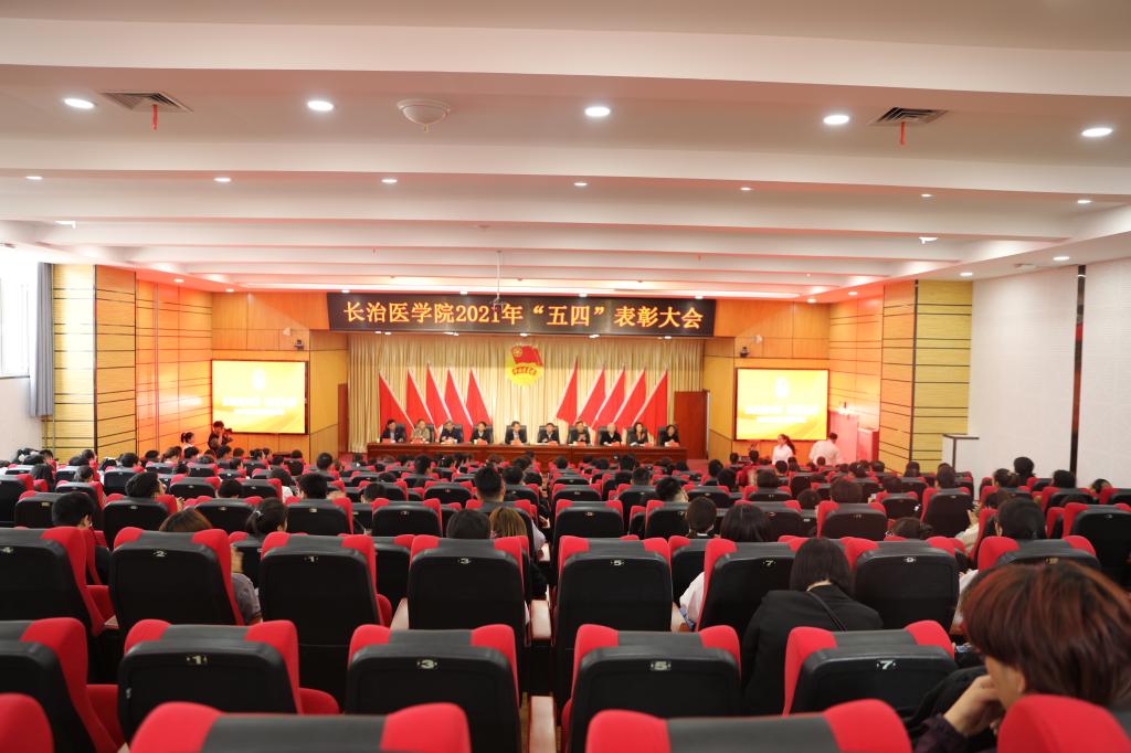 4月28日下午,我校在临床技能中心学术报告厅召开2021年“五四”表彰大会。学校党政领导李华荣、徐建和、宋晓亮、王金胜、郑金平,关工委常务副主任王新才,学工部部长邢育宏,宣传部部长崔红,校党(院)办主任、校团委书记王黎刚,人事处处长、青工委常务副主任姚慧卿出席大会。相关部门负责人,各院系党总支书记、各院系团委书记,受表彰集体和个人代表、新入团青年、团员青年共200余人参加大会。大会由王黎刚主持。