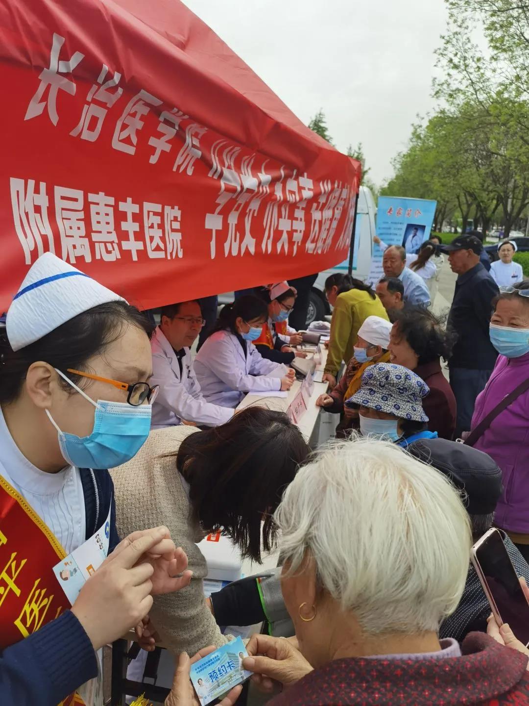 义诊现场,春光明媚,风和日丽,前来咨询的群众络绎不绝,义诊专家们热情解答群众咨询,广泛普及健康知识;还免费提供专科检测、血压检测和心电图检查,并根据患者检查情况,及时开具处方,调整用药方案,得到了居民群众的一致好评。义诊现场还为广大居民群众提供了和平专家预约服务,发放了预约卡,让社区居民在“家门口”就能享受到精准、便捷、优质的健康服务。