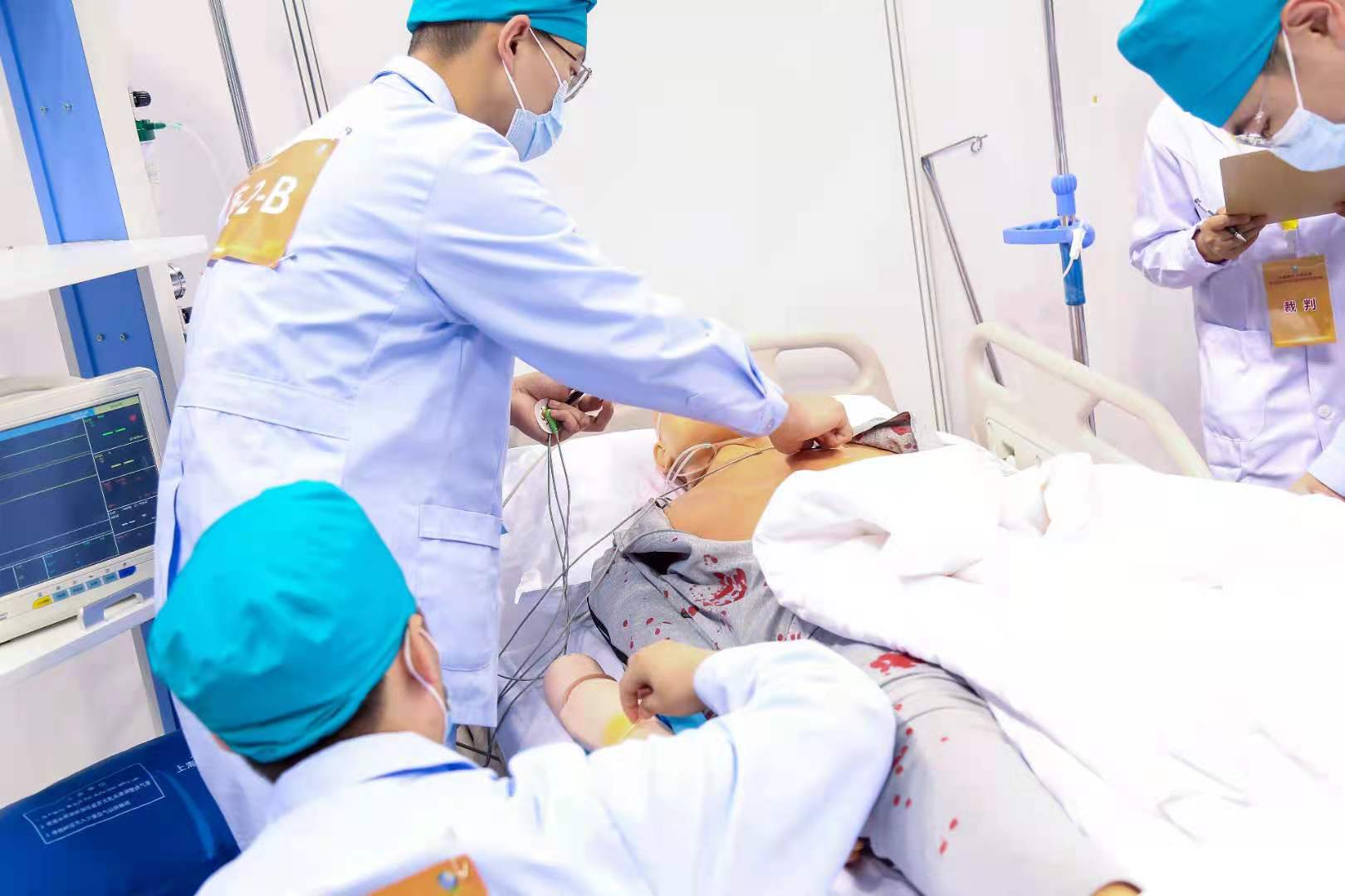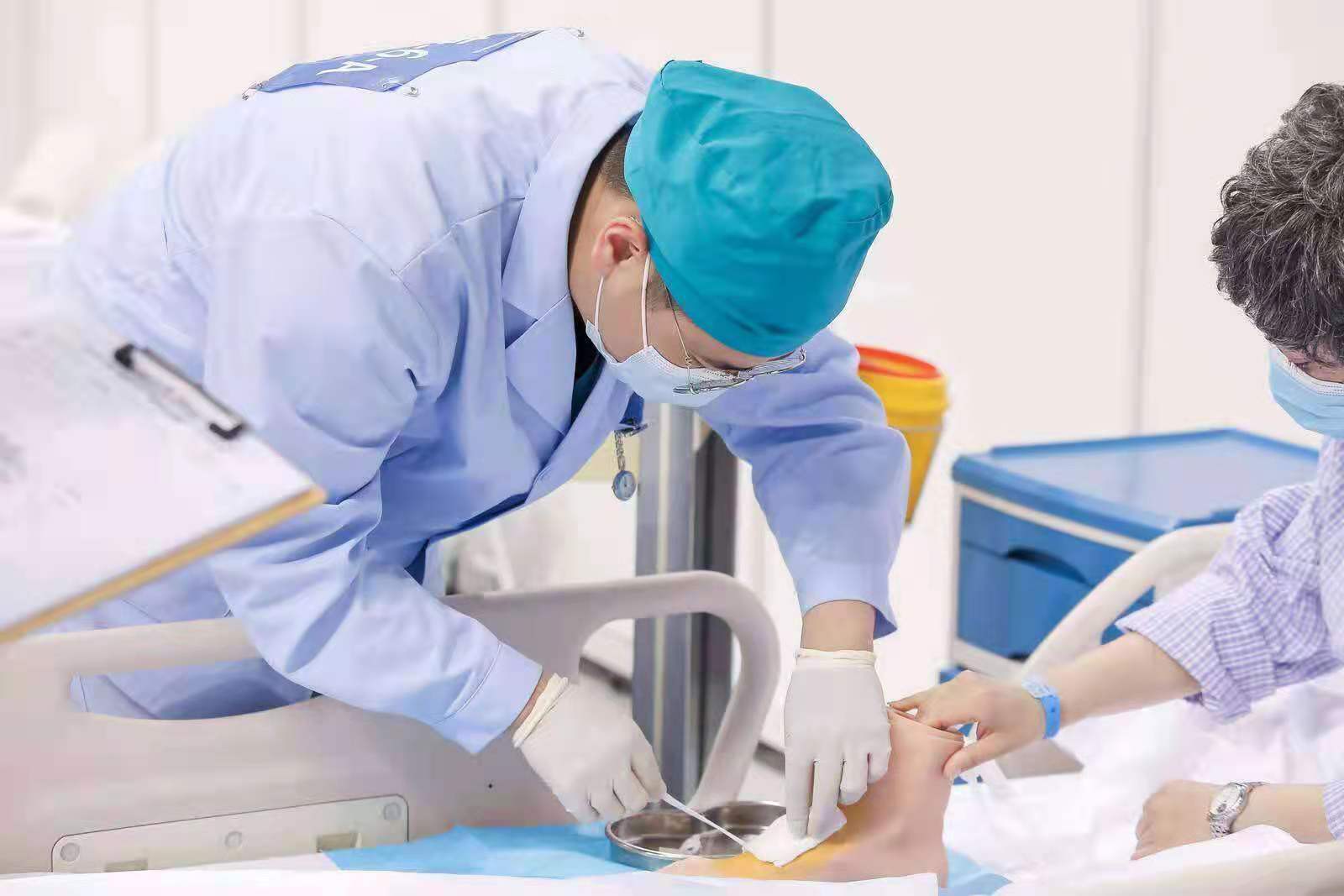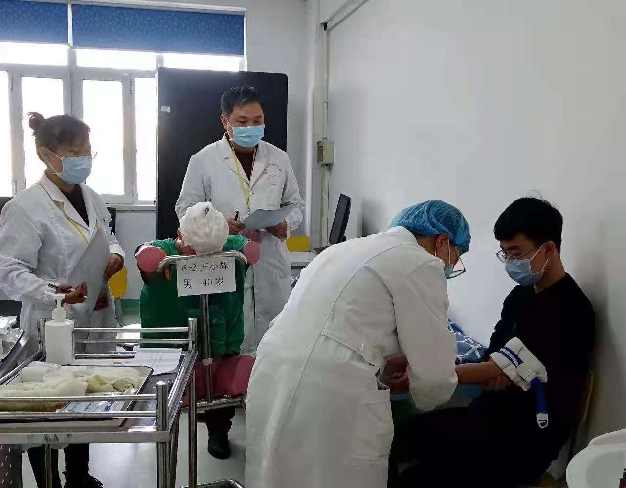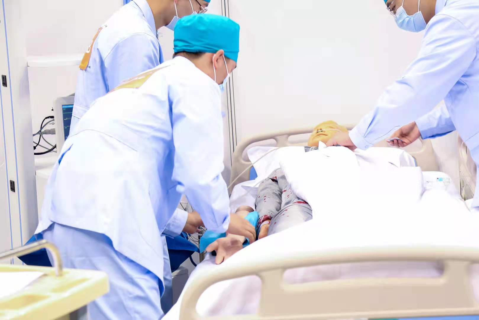 本届大赛首次增设了护理学专业赛道,按照学校整体部署,我校参赛队由护理学系和附属和济医院共同承担培训任务。学校从附属和济医院遴选出教学能力强、责任心强的护士、医生作为培训教师,组建了脱产专职教师团队和兼职教师团队,选拔出护理学系2017级学生王文广、武少鹏、苑文森和高卓冉4名参赛选手。