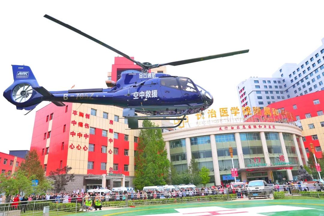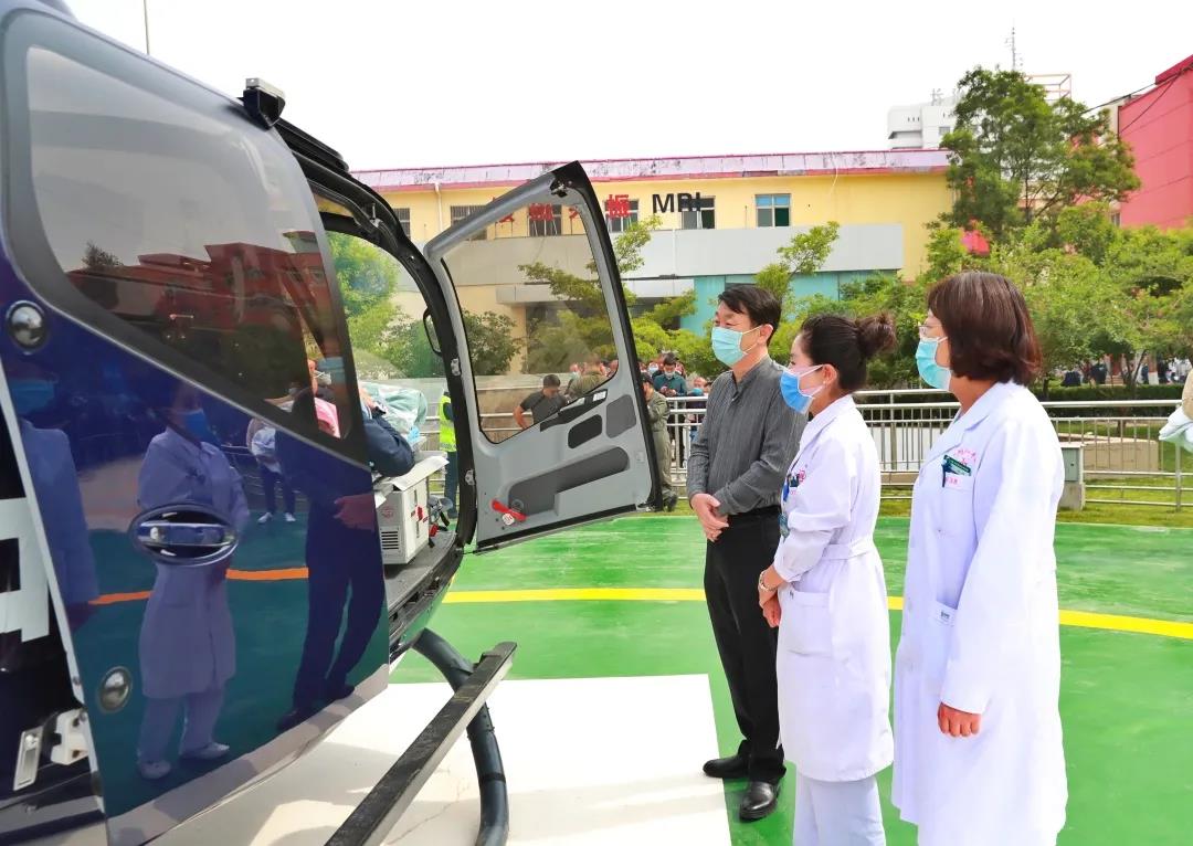 5月19日上午11:23,附属和平医院门诊楼前一架航空救援直升机紧急起飞。这是和平医院空中医疗救援成立以来首例转运患者,标志着医院空中医疗救援工作进入实操阶段。