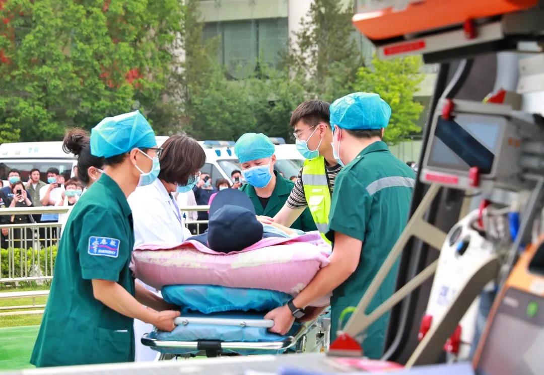 中午12:25,救援直升机安全降落至郑大一附院停机坪,第一时间送往急诊科。目前患者病情稳定,已经给予及时救治。