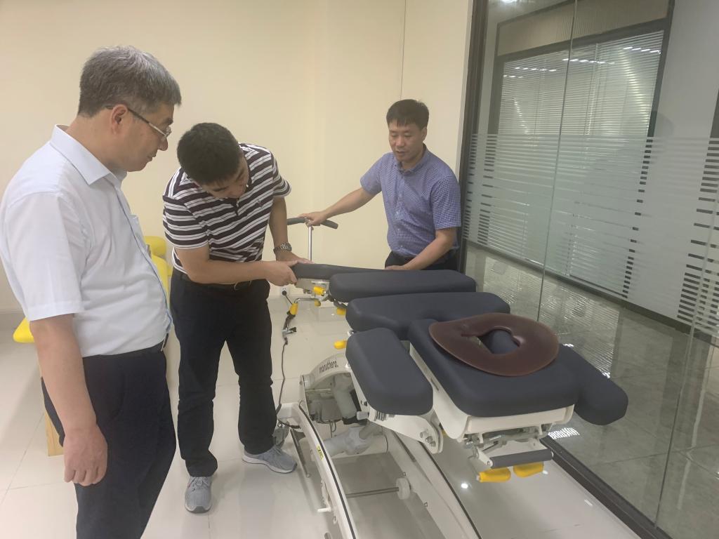 郑金平一行在兴汇科技公司负责人邢金国陪同下,还观摩和体验了整脊床、干涉波变频治疗仪、水疗康复设备等系列智能康复器械产品,为进一步深入合作奠定了基础。