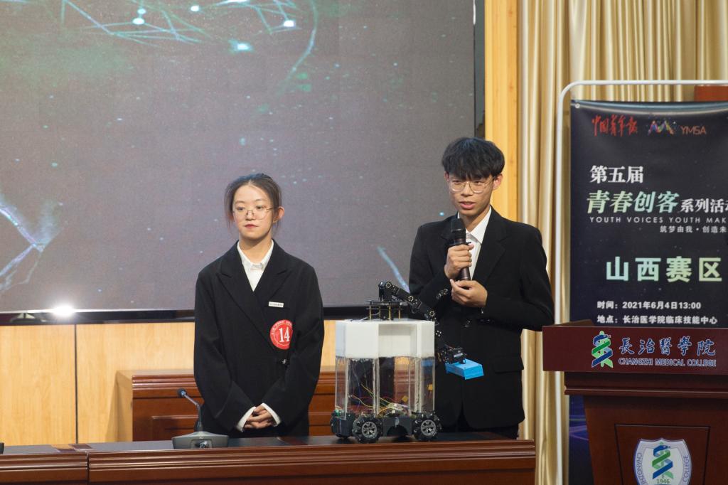 为深入贯彻习近平总书记关于青年工作的重要思想,全面落实团十八大的工作部署,培养和提高广大青年创新、创业、就业的意识和能力,引导和激励高校青年将所学知识与经济社会发展紧密结合,6月4日下午,由中国青年报社、中国青少年新媒体协会主办、我校承办的“筑梦由我,创造未来”第五届“青春创客”系列活动之创客路演山西赛区选拔赛在我校临床技能中心学术报告厅举办。