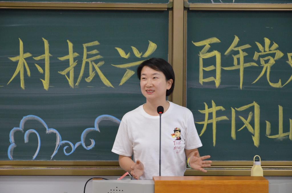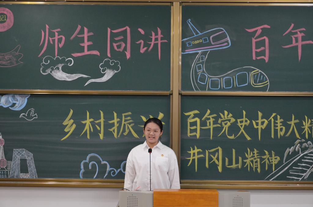 张丽娜为以“百年党史中的伟大精神——井冈山精神”为題进行宣讲,从井冈山斗争史的基本概况和井冈山精神的内涵及价值两个方面分享了学习心得;讲述了井冈山的斗争史的四个阶段;剖析了我党选择井冈山作为根据地的原因。她在总结中指出“有信仰的人是幸福的”“真理使人得自由,信仰是生命的粮食”“让信仰点亮人生,让井冈山精神放射出新的时代光芒”,希望同学们把精神血脉里的红色基因传承下去。