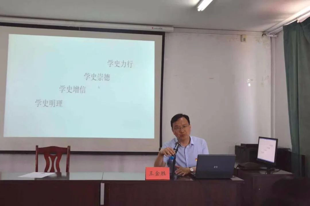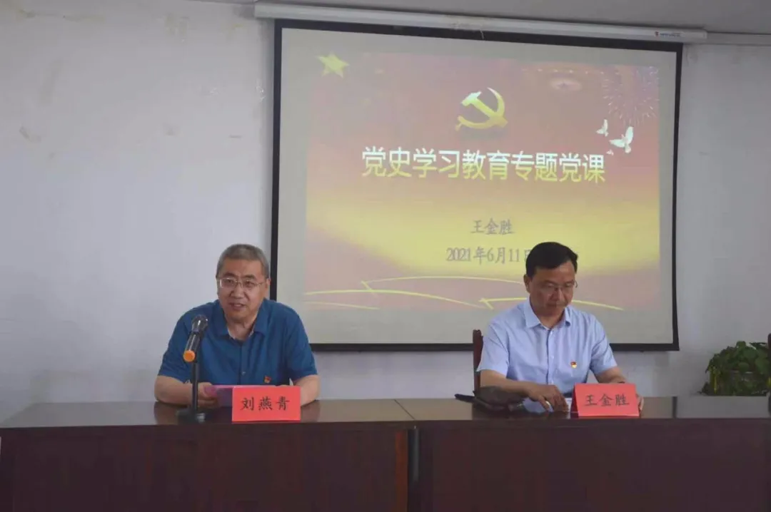 王金胜围绕中国共产党为什么“能”、马克思主义为什么“行” 、中国特色社会主义为什么“好”,从近代中华民族复兴的历史任务和各种力量的艰难探索、五四运动和马克思主义在中国的传播、中国共产党的成立和民主革命纲领的制定、第一次国共合作和大革命高潮的兴起、北伐战争和工农运动、国共合作的破裂和大革命的失败六个方面,系统回顾了中国共产党应运而生这一开天辟地的大事变。王金胜指出,党团结带领中国人民经过艰苦卓绝的奋斗,完成了建国大业、兴国大业、富国大业、强国大业,形成了伟大的中国共产党人精神谱系。从中国共产党领导中国人民实现中华民族伟大复兴的历史脉络、逻辑关系和经验规律,可以看出,中国共产党的成立,是近代中国历史发展的必然产物,是中国人民在救亡图存斗争中顽强求索的必然产物,是实现中华民族伟大复兴的必然产物,党的百年辉煌历史就是一部“不懈奋斗史”“理论探索史”“自身建设史”。王金胜强调,新时代新征程,要高举习近平新时代中国特色社会主义思想伟大旗帜,学深学透党史,学史明理、学史增信、学史崇德、学史力行,将学习成效与具体工作结合起来,赓续红色基因,坚定信仰信念,践行初心使命。
