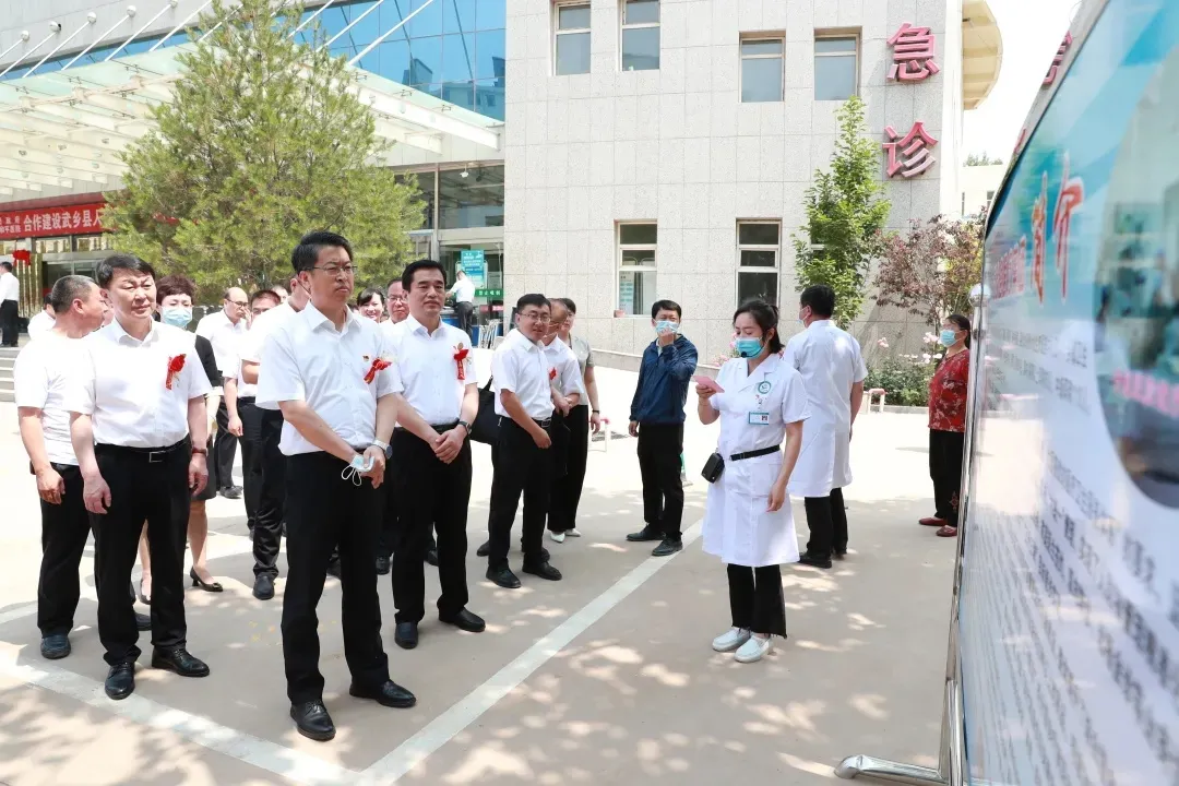 启动仪式结束后,我校及附属和平医院的主要领导,在武乡县有关领导的陪同下,前往武乡县医院发热门诊、急诊科、消毒供应中心等科室参观调研。