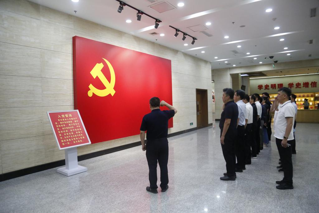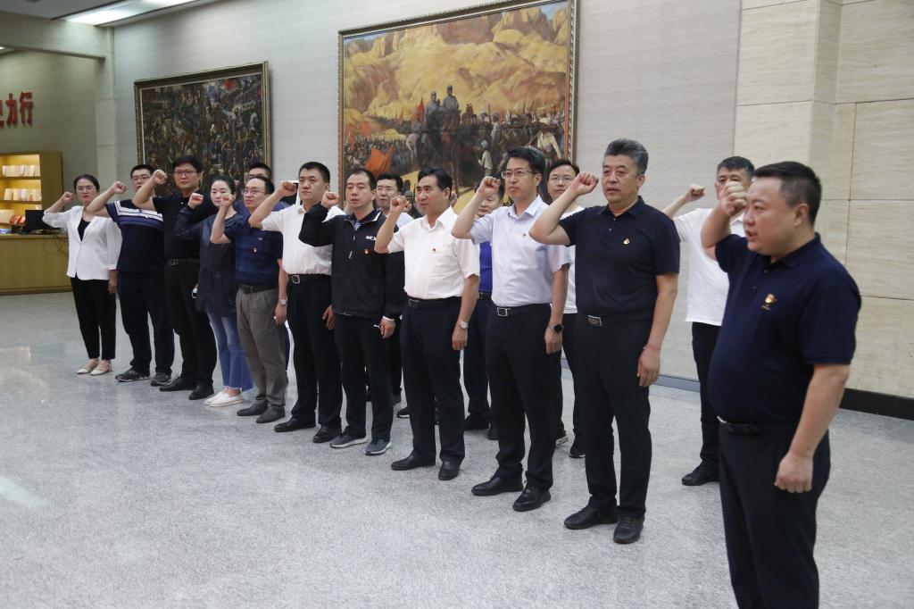 面对鲜红的党旗,全体党员庄严地举起右手,重温了入党誓词,从太行精神中感悟初心使命,坚定理想信念,汲取奋进力量。