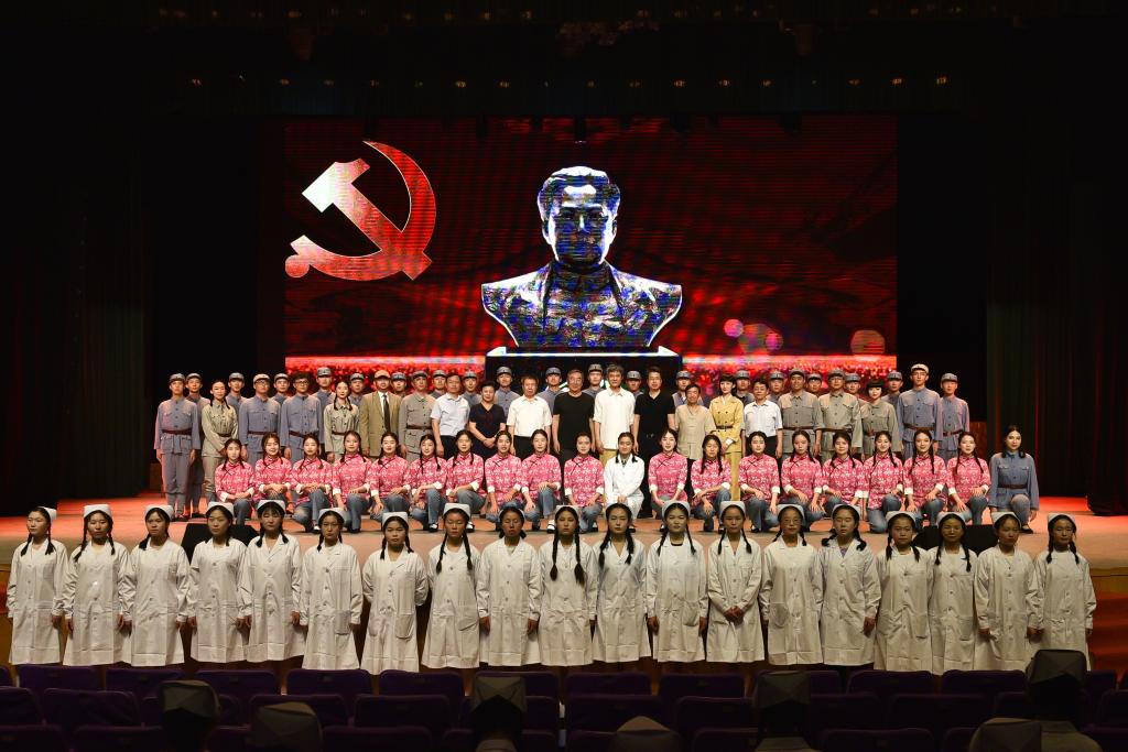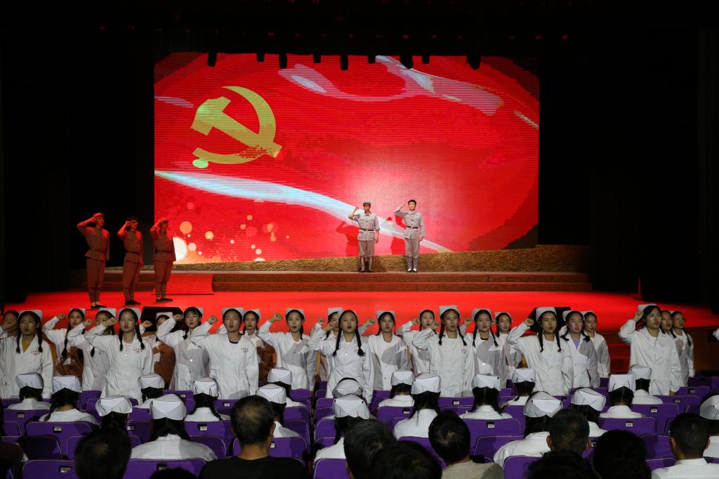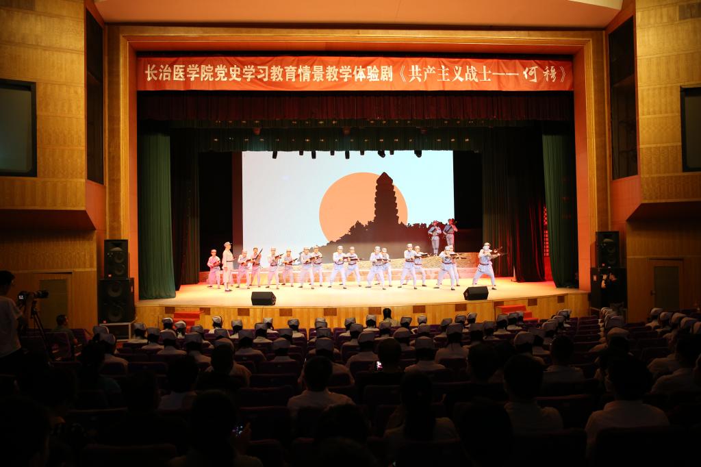 为深度挖掘党史人物事迹,打造“沉浸式”学习体验课堂,让党史学习教育“活”起来,我校以《中共党史人物传》(第51卷)田蓓撰写的何穆事迹为依据,历时半年打造的党史学习教育情景教学体验剧《共产主义战士——何穆》,于6月21日晚在科学会堂首演。学校领导班子成员,附属医院领导班子成员,学校党员干部、师生代表观看了演出。