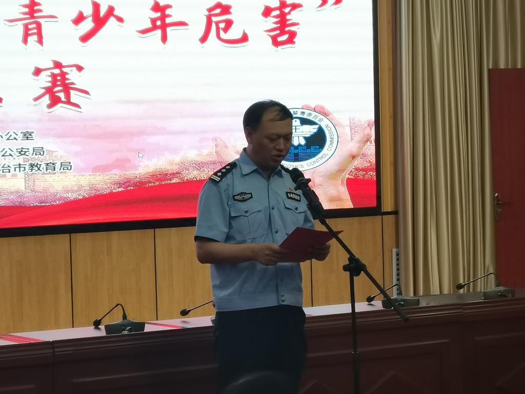 我校党委常委、副校长胡春香,长治市教育局二级调研员郭文,长治市公安局党委委员、副局长李朝阳,长治市少工委主任郭兰芳,校团委副书记连静参加了启动仪式。启动仪式上,长治市公安局禁毒大队支队长王宇致辞。他指出,此次禁毒演讲比赛旨在积极探索运用新形式、新方法开展青年学生毒品预防教育工作,切实增强其识毒、防毒、拒毒的意识与能力,使同学们更加深刻地认识到毒品对个人、家庭和社会的危害,希望同学们能够共同抵制毒品侵害,珍惜美好华年,拒做毒品傀儡,共享健康人生。