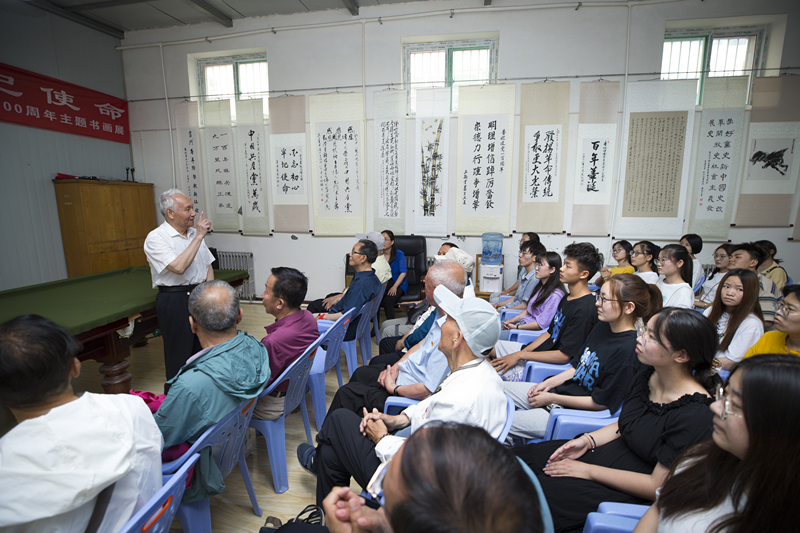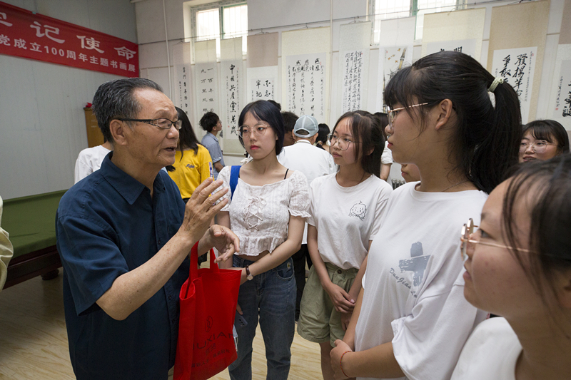 活动现场,老党员们为青年学生讲解创作心得,从振业兴邦的兴业路,到民殷国富的复兴路;从风雨兼程的百年前,到坚守使命谋复兴的新时代,对学生们进行了爱党、爱国主义教育,激发了学生们传承中华优秀传统文化的热情。同学们纷纷表示要努力学习党史、坚定理想信念、牢记初心使命。学习榜样、学习典型,领悟真谛,汲取力量,学以致用,将其运用于生活学习中,为实现中华民族伟大复兴的中国梦努力奋斗。