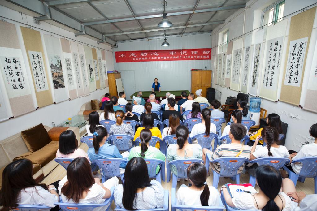以丹青绘盛世,以翰墨书党恩。为庆祝中国共产党成立100周年,6月21日下午,离退休人员党总支在活动室举办庆祝中国共产党成立一百周年“不忘初心、牢记使命”主题书画展。活动由党总支书记赵慧荣主持。